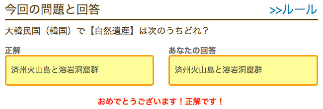大韓民国 韓国 で 自然遺産 は次のうちどれ クイズの記録