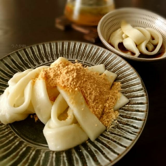 ク イ ズ の 答 え 合 わ せ 小麦粉を練ったものを平たく伸ばして茹で きな粉と砂糖をまぶして食べる 大分県の伝統的なお菓子は